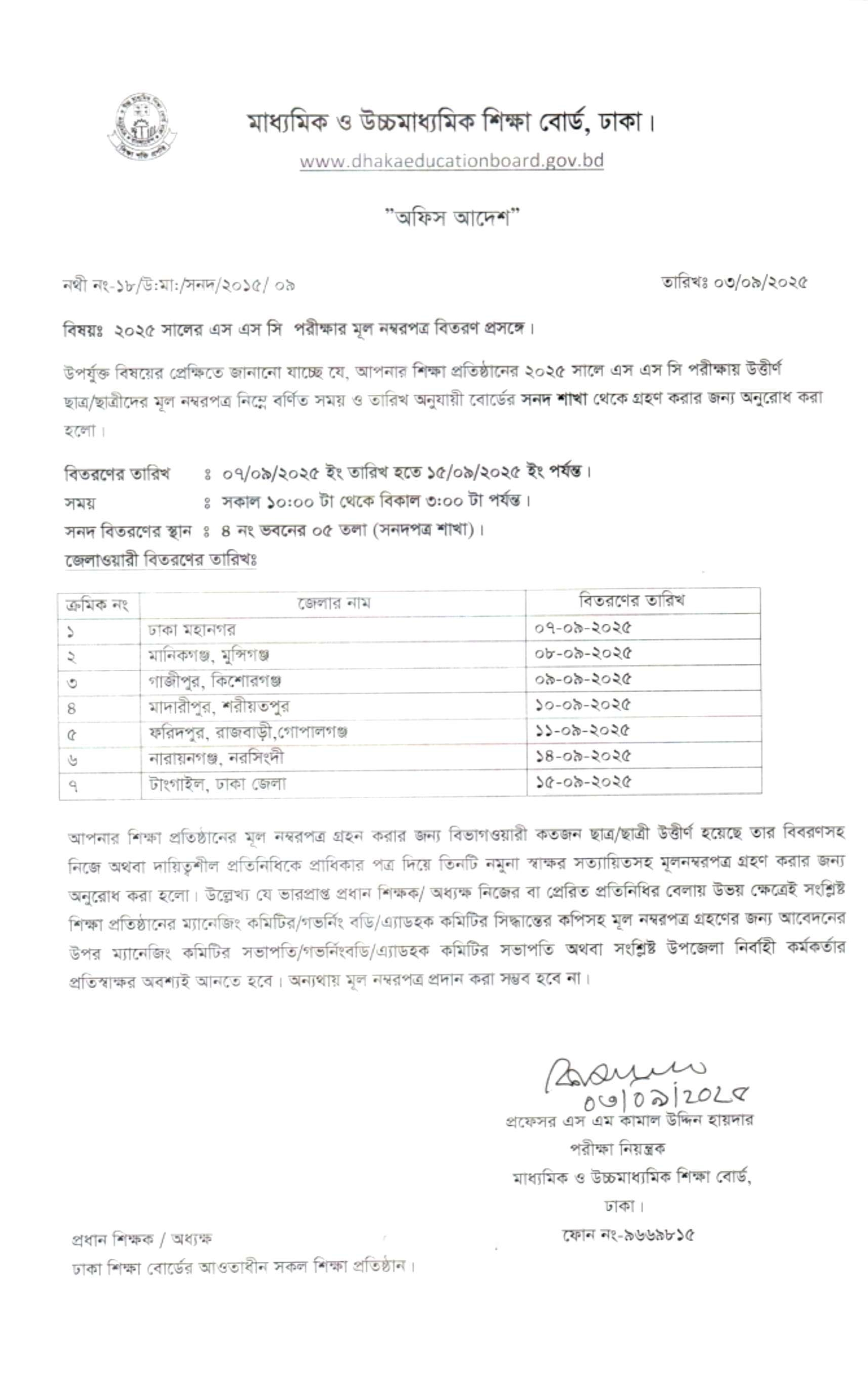 মাধ্যমিক ও উচ্চমাধ্যমিক শিক্ষা বোর্ড, ঢাকা ০৩-০৯-২০২৫ ইং তারিখের বিজ্ঞপ্তি মোতাবেক প্রকাশিত হলো।