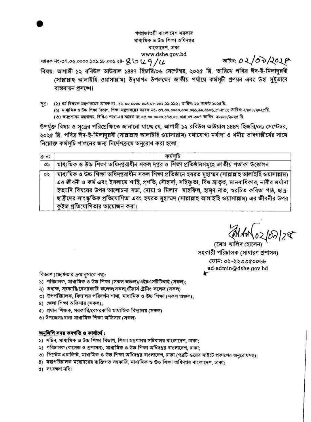মাধ্যমিক ও উচ্চ শিক্ষা অধিদপ্তর , ঢাকা ০২-০৯-২০২৫ ইং তারিখের বিজ্ঞপ্তি মোতাবেক প্রকাশিত হলো।