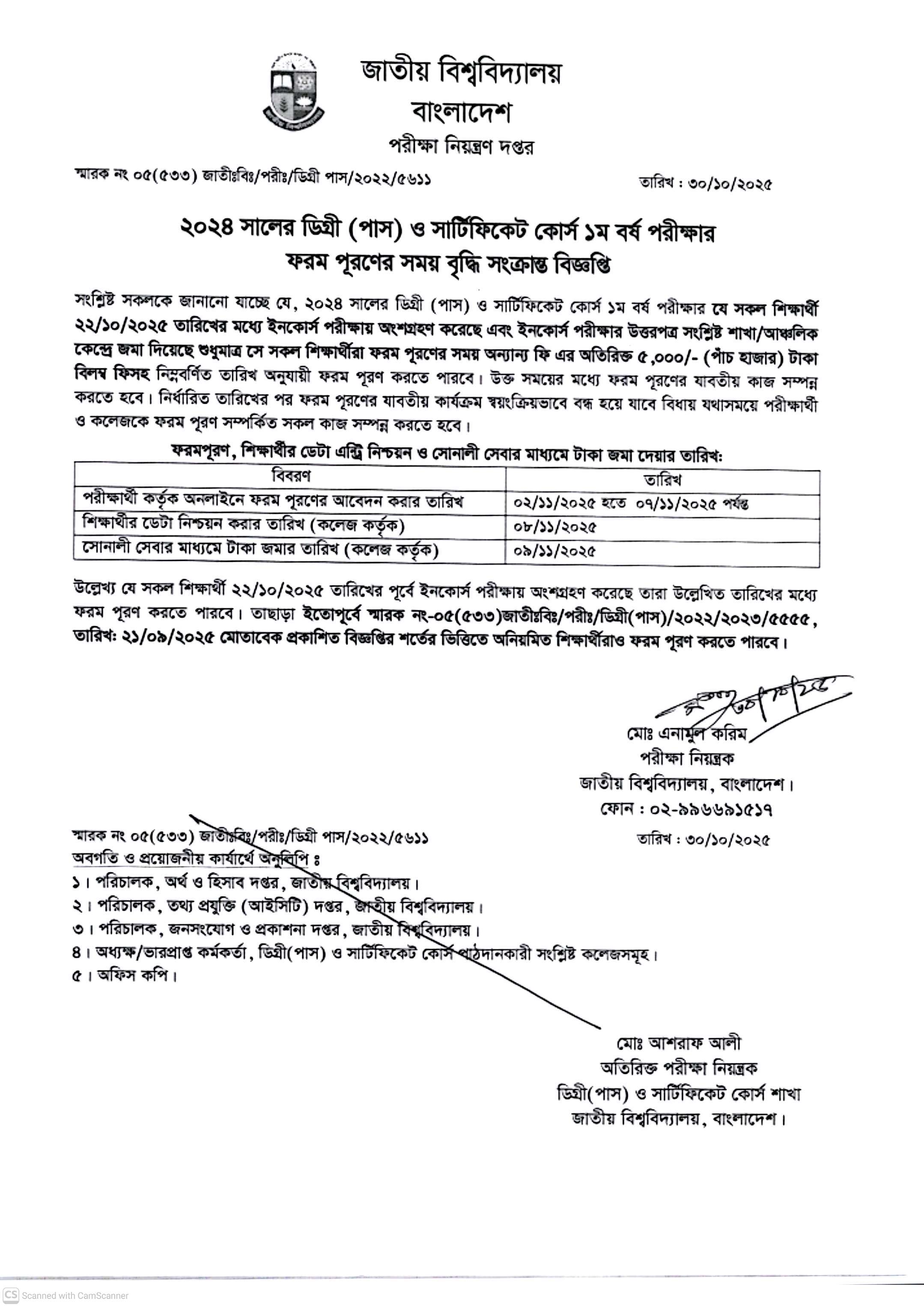 Description : জাতীয় বিশ্ববিদ্যালয়ের ৩০-১০-২০২৫ ইং তারিখের বিজ্ঞপ্তি মোতাবেক প্রকাশিত হলো।